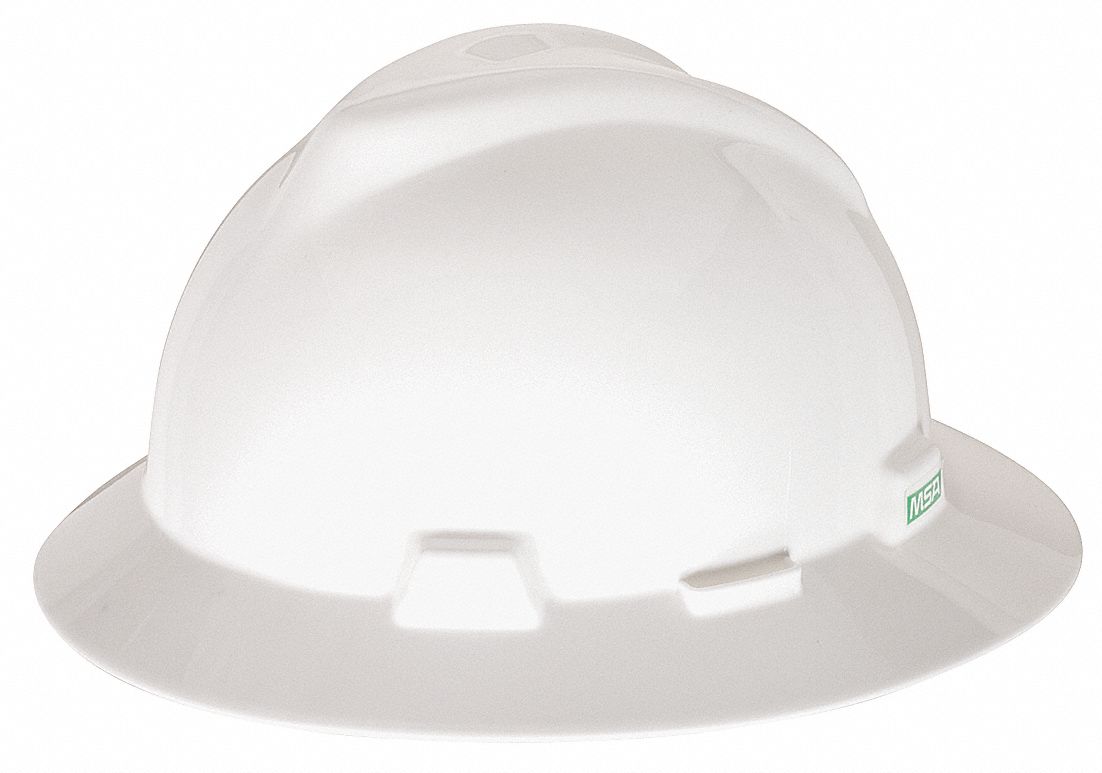 Msa V Gard Full Brim Hard Hat White Harness Land